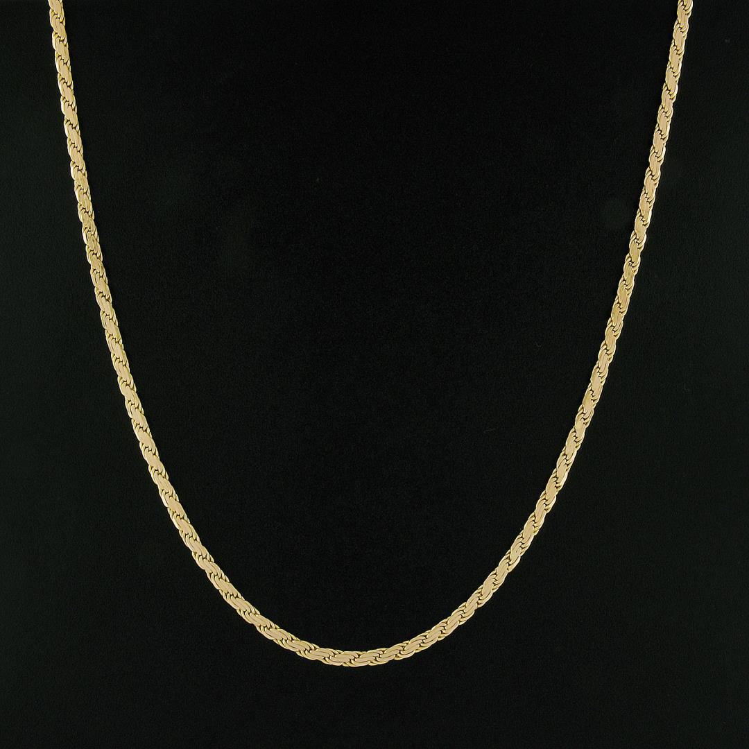 A solid 14k yellow gold italian rope link chain. It weighs a total of 16.84 grams, measures 3.2mm wide, and measures 17 inches in length.
