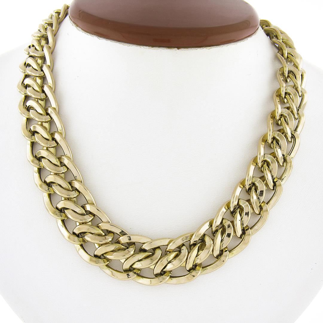 An italian solid 14k yellow gold statement necklace by UNOAERRE. It weighs a total of 57.41 grams, measures 17.3mm wide, and measures 17 inches in length.