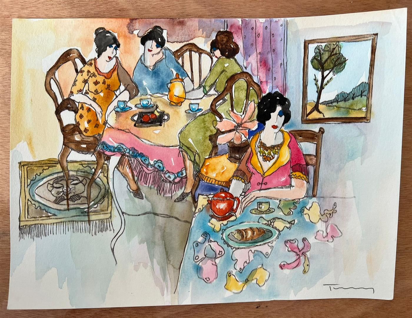 Itzchak Tarkay "Untitled Mini 28" Hand Signed Mixed Media Watercolor on Paper Dimensions: 12 x 9 Inches