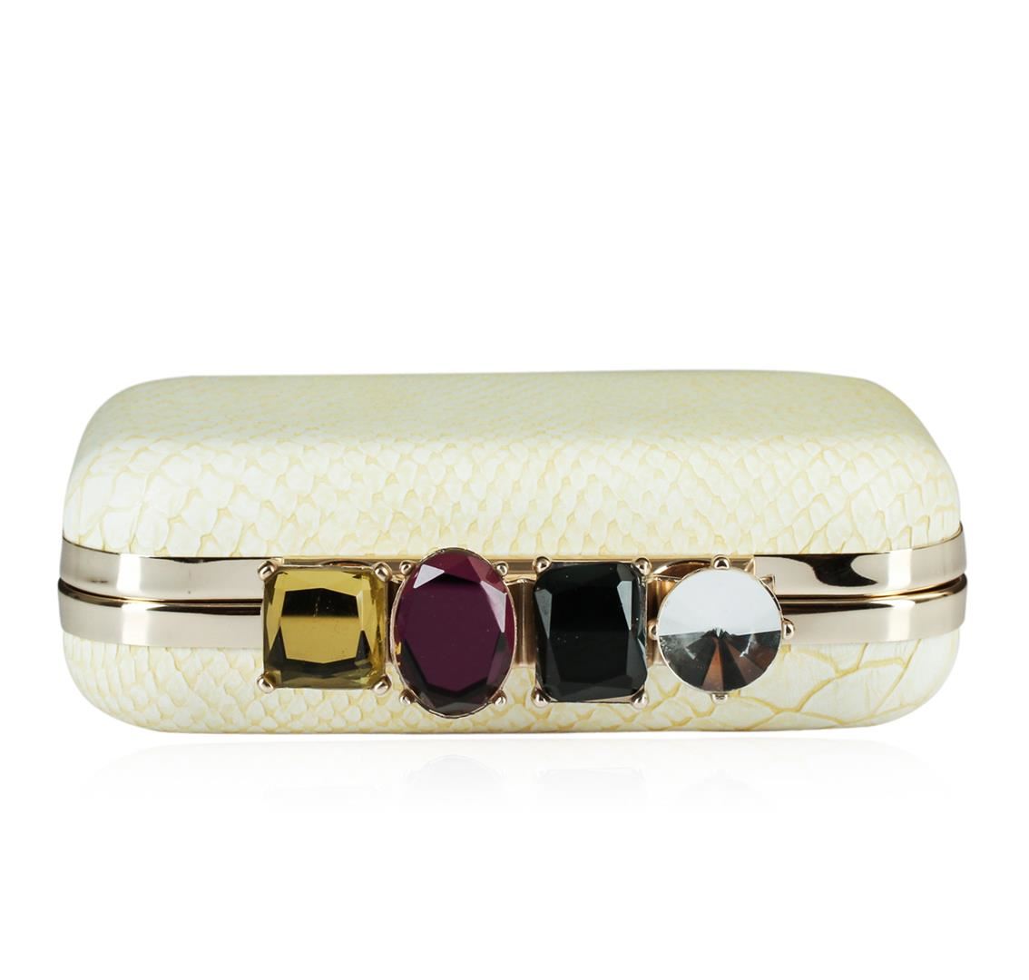 A Beautiful Ivory Textured Evening Clutch with accent Stones.