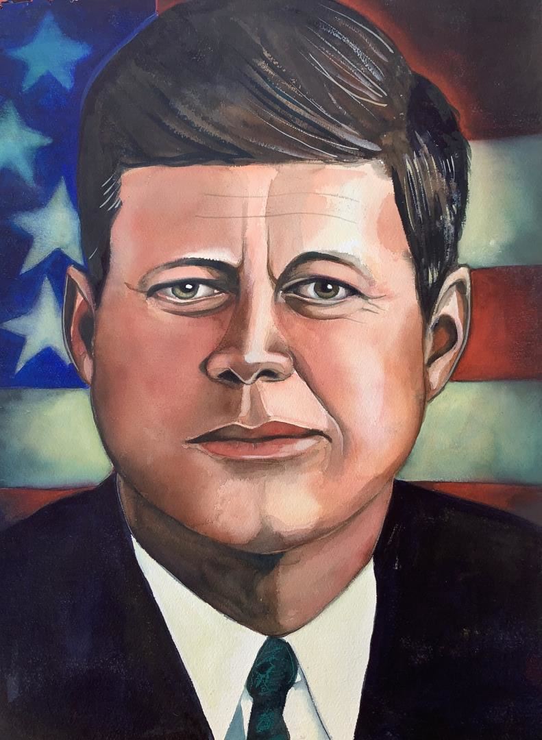 A pastel & watercolor portrait of US President John F. Kennedy 24x18"on deckled fine art paper by Anonymous