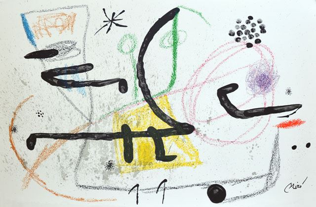 Artist: Juan Miro Title: Maraval's 9 Medium: Serigraph on Paper Signature: Hand-signed by the Artist Print Sign Image Size: Approximately 19 inches x 28 inches Framed: Unframed Biography: Miro's abstract works emphasize spontaneity and energy manifested by streamlined, rhythmic patterns. Miro is noted by art critics for his incredible abstract lithographs, etchings, dry points, linocuts and woodcuts. In 1983 his 90th birthday was celebrated by a huge celebration throughout the European art community. Miro passed into the great abstract beyond December 25, 1983 in Palma de Majorca. We will never see his likes again, the grand master of Abstract Expressionism, Joan Miro.