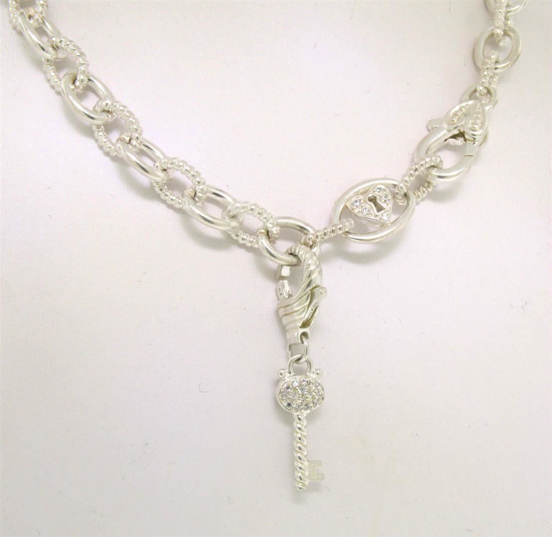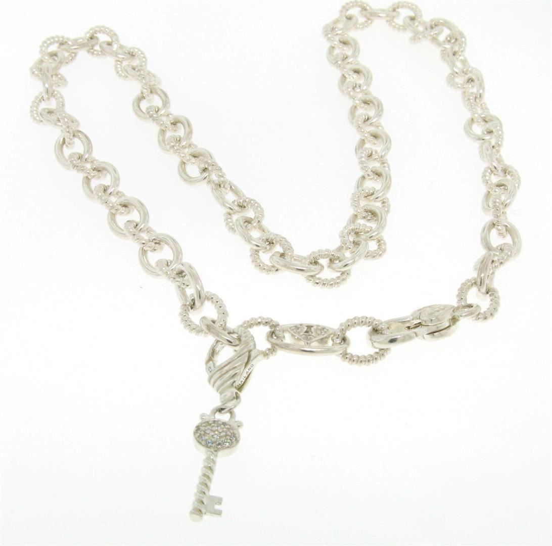 An estate Solid Silver chain by judith ripka elaborate with a key enhancer. 20 inch link chain, 55.10 grams total weight, pendant measures 36.72x10.19mm.