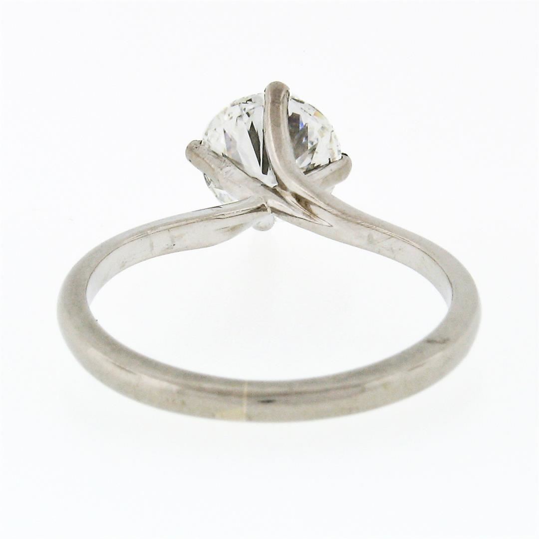 An estate solid 18k white gold engagement ring by Jabel, with 1 Gia certified round brilliant cut natural diamond (E - SI2; 1.02ct). The ring is size 5.25, weighs a total of 2.32 grams, and measures 7.71mm wide. Comes with all original relevant certifications.