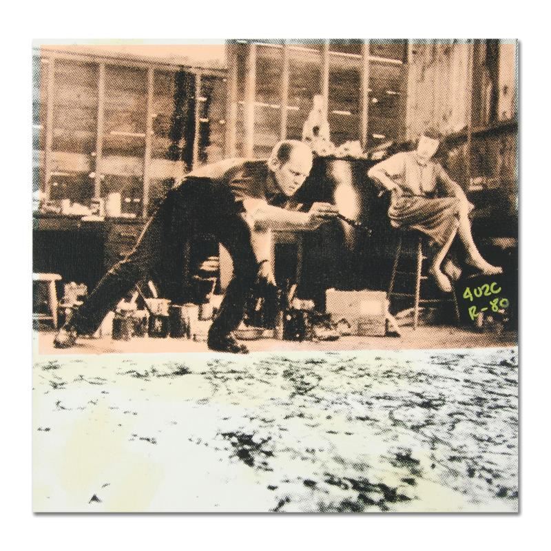 "Jackson Pollock at Work" is a one-of-a-kind hand-pulled silkscreen and mixed media painting on canvas by Ringo. This piece is hand signed by the artist and comes from the Andy Warhol Legacy Series. Includes Certificate of Authenticity. Due to the nature of the canvas, these pieces will need to be mounted for framing. Measures approx. 16" x 16" (image).