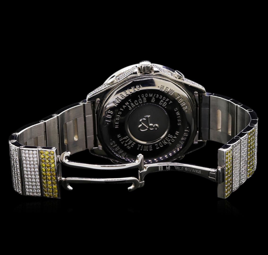 One Jacob & Co. watch featuring: Case: Stainless steel set with diamonds. Bezel: Stainless steel set with diamonds. Dial: White mother of pearl color. Bracelet: Stainless steel set with diamonds.