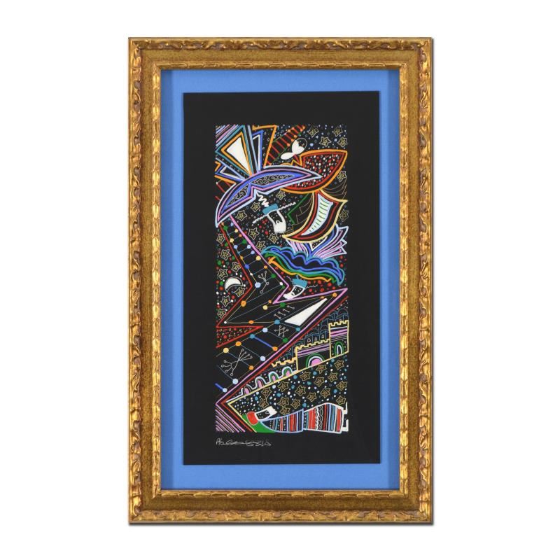 "Jacob and the guardian angel" is an original painting, gouache on board, by Raphael Abecassis. Hand signed by the artist, this piece comes framed and with a certificate of authenticity. Measures approx. 12" x 18" (frame); 5" x 11" (image).