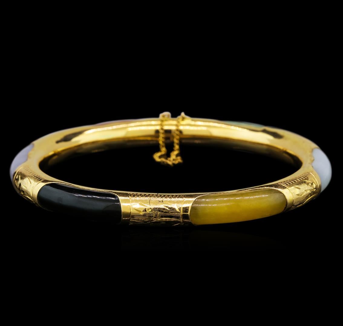 Jade Bangle Bracelet - 14KT Yellow Gold. Total Weight: 22.5 grams.
