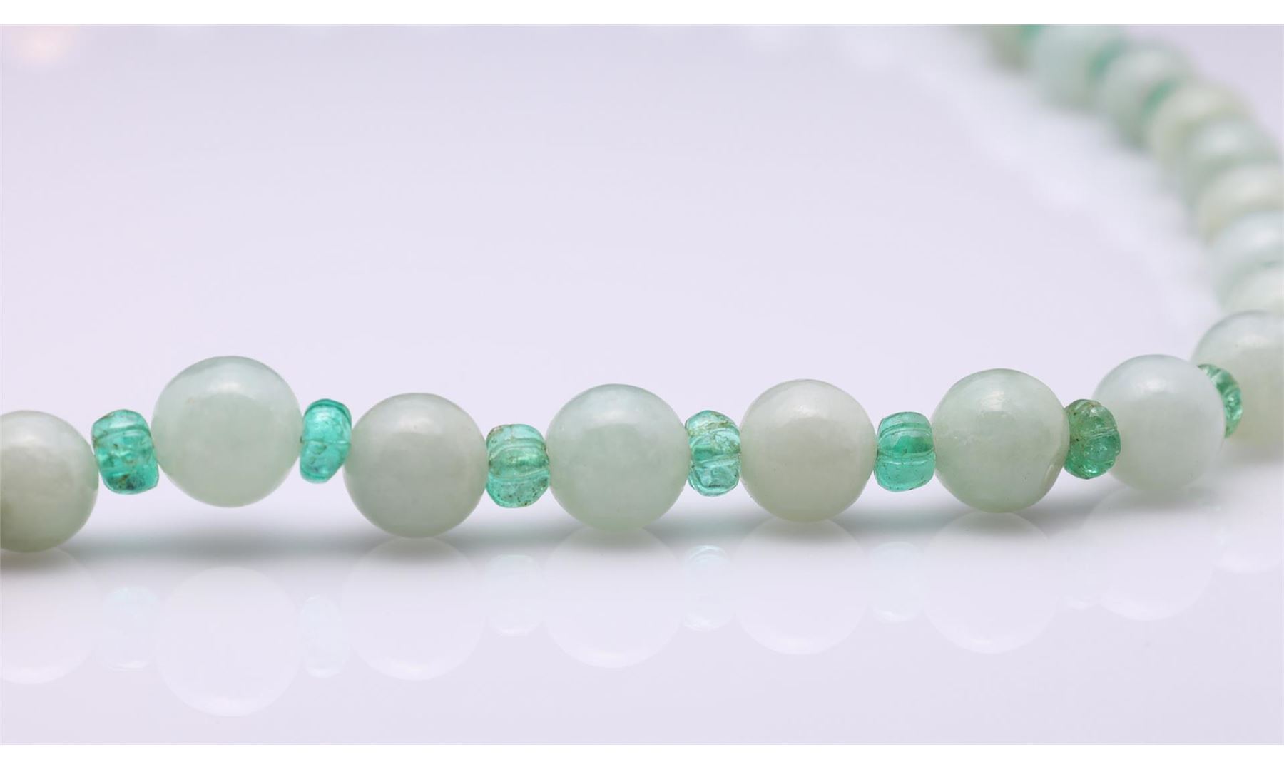 Jadeite, Emerald & 18K Gold Necklace by R. L. Kay. Contains one diamond weighing approximately 0.18 cts. Total weight of 64.8 gm. Estimated retail value $3,600.