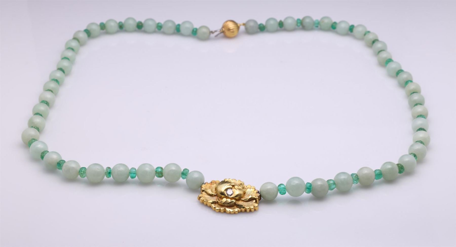 Jadeite, Emerald & 18K Gold Necklace by R. L. Kay. Contains one diamond weighing approximately 0.18 cts. Total weight of 64.8 gm. Estimated retail value $3,600.
