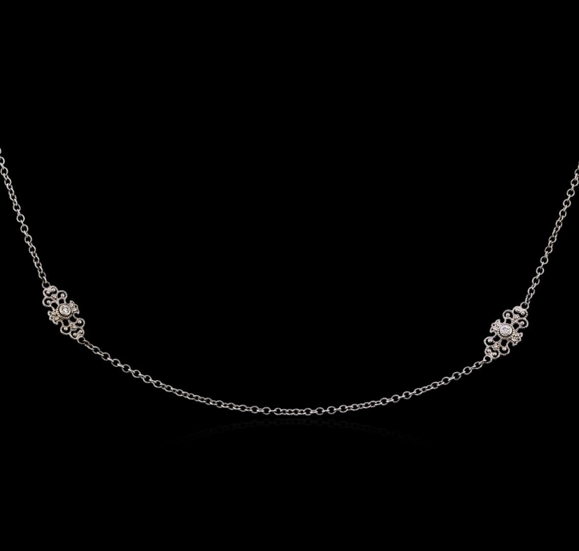 One James Kurk necklace featuring: 14KT white gold weighing approximately 3.40 grams containing diamonds with a total weight of 0.11ct.