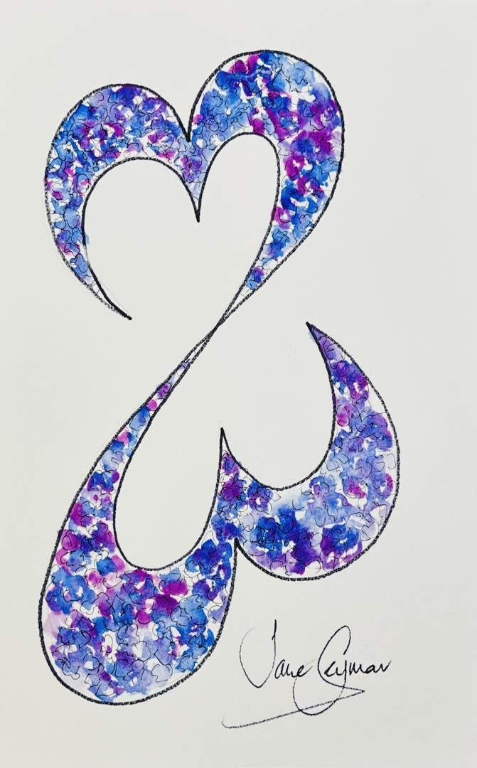Watercolor on paper, signed lower right by Jane seymour , 12 1/4 x 7 3/4" The Open Heart Icon design with flowers