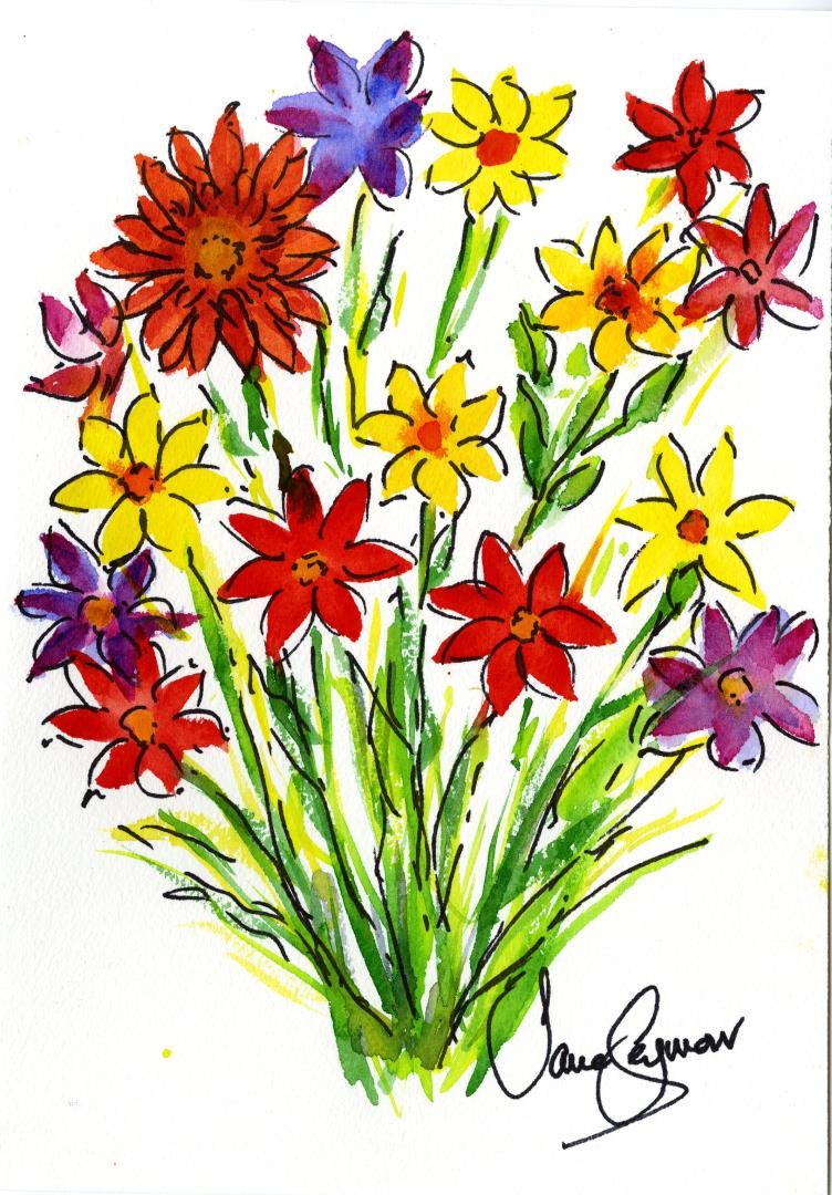 Watercolor with pen & ink on paper, signed lower right by Jane Seymour; 10 1/4 x 7" Created during the time of Covid, Jane painting together with seniors to make them smile