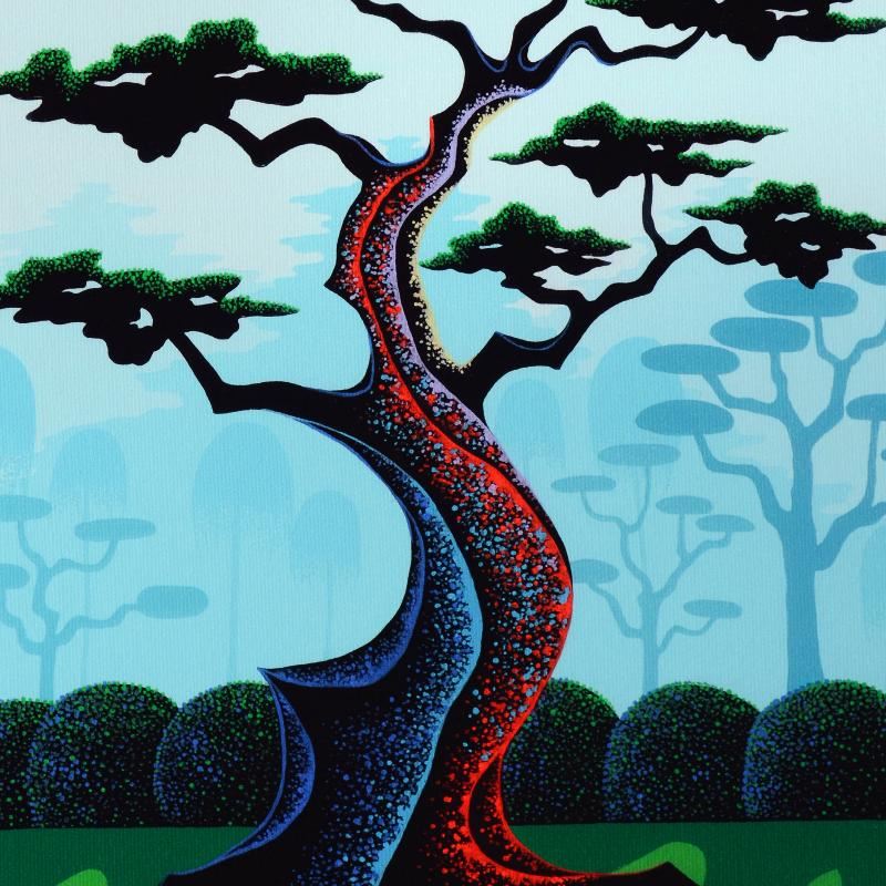 Larissa Holt, a student of distinguished artist Eyvind Earle(1916-2000), uses bold colors and breathtaking scenery to create images of Nature in her own unique style. "Japanese Garden" is a limited edition giclee on stretched canvas by Holt, numbered and bearing Holt's authorized signature. This piece comes gallery wrapped. Includes Certificate of Authenticity! Measures approx. 10" x 12.5" x 1.5" (image).
