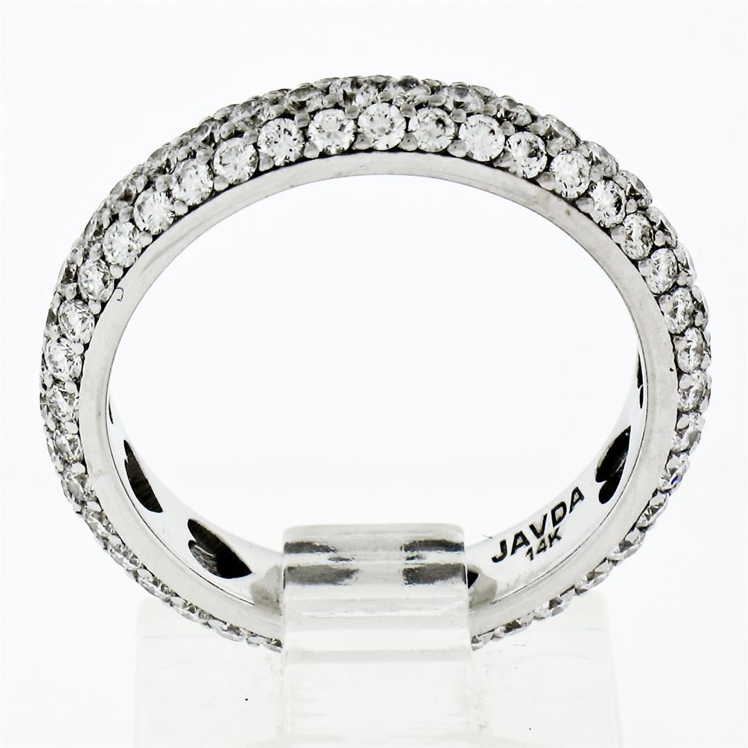 An estate solid 14k white gold band ring by Javda, featuring 120 round brilliant cut natural diamonds (F/G - VVS2/VS1; 2.50ctw). The ring is size 7.0, weighs a total of 3.63 grams, and measures 4.15mm wide.