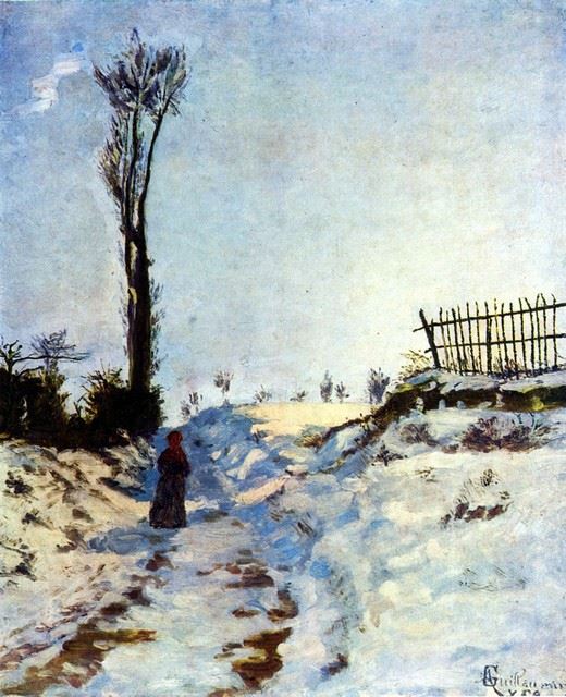 Artist: Jean-Baptiste-Armand Guillaumin - Title: Walking in the Snow - Medium: Fine Art Reproduction Giclee on Canvas - Image Size: Approximately 20 inches x 16.25 inches - Unframed on Unstretched Canvas - Biography: Jean-Baptiste-Armand Guillaumin (born February 16, 1841, Paris, France--died June 26, 1927, Paris), French landscape painter and lithographer who was a member of the Impressionist group.