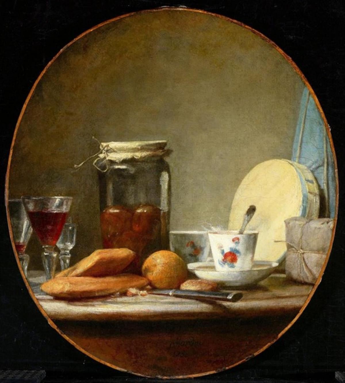 Artist: Jean Baptiste Chardin - Title: Jar of Apricots - Medium: Fine Art Reproduction Giclee on Canvas - Image Size: Approximately 20 inches x 18 inches - Unframed on Unstretched Canvas - Biography: Jean-Baptiste-Siméon Chardin (November 2, 1699 - December 6, 1779) was an 18th-century French painter. He is considered a master of still life, and is also noted for his genre paintings which depict kitchen maids, children, and domestic activities. Carefully balanced composition, soft diffusion of light, and granular impasto characterize his work.