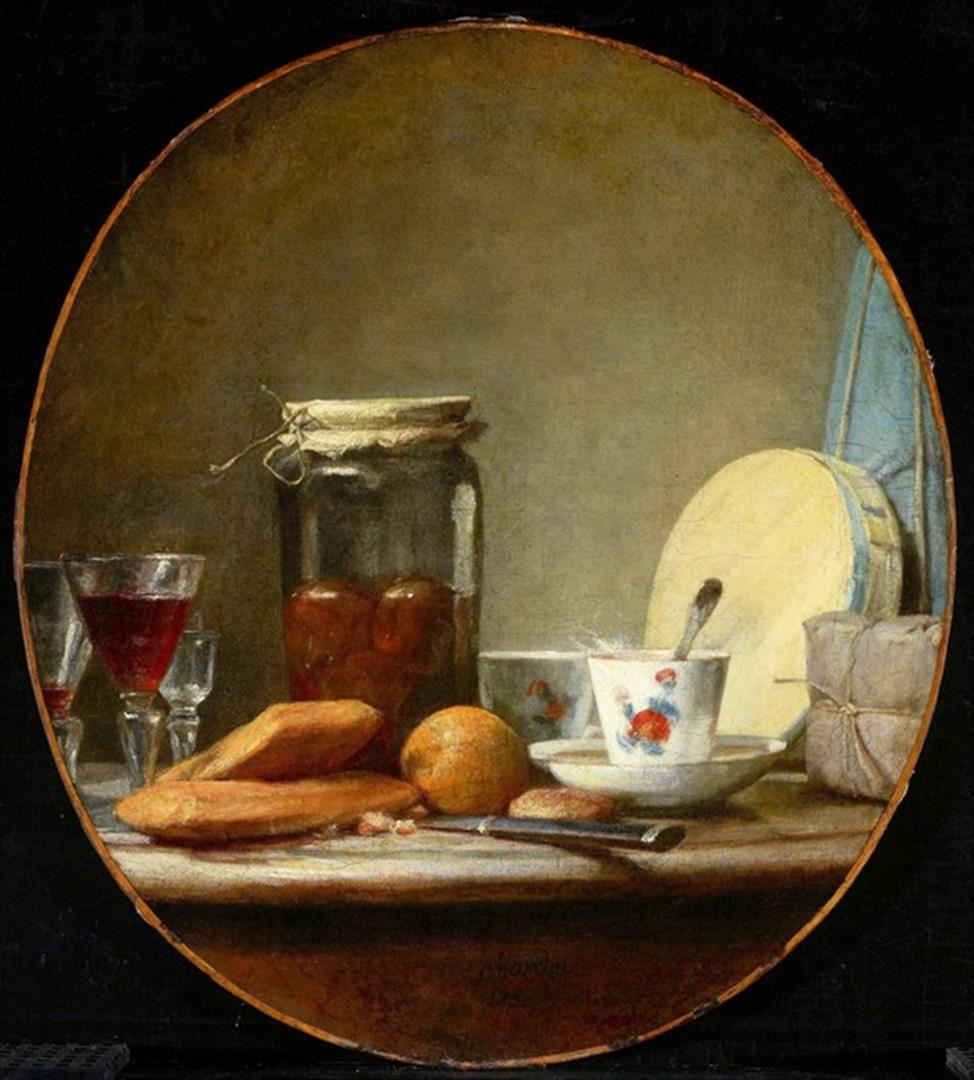 Artist: Jean Baptiste Chardin - Title: Jar of Apricots - Medium: Fine Art Reproduction Giclee on Canvas - Image Size: Approximately 20 inches x 18 inches - Unframed on Unstretched Canvas - Biography: Jean-Baptiste-Simeon Chardin (November 2, 1699 - December 6, 1779) was an 18th-century French painter. He is considered a master of still life, and is also noted for his genre paintings which depict kitchen maids, children, and domestic activities. Carefully balanced composition, soft diffusion of light, and granular impasto characterize his work.