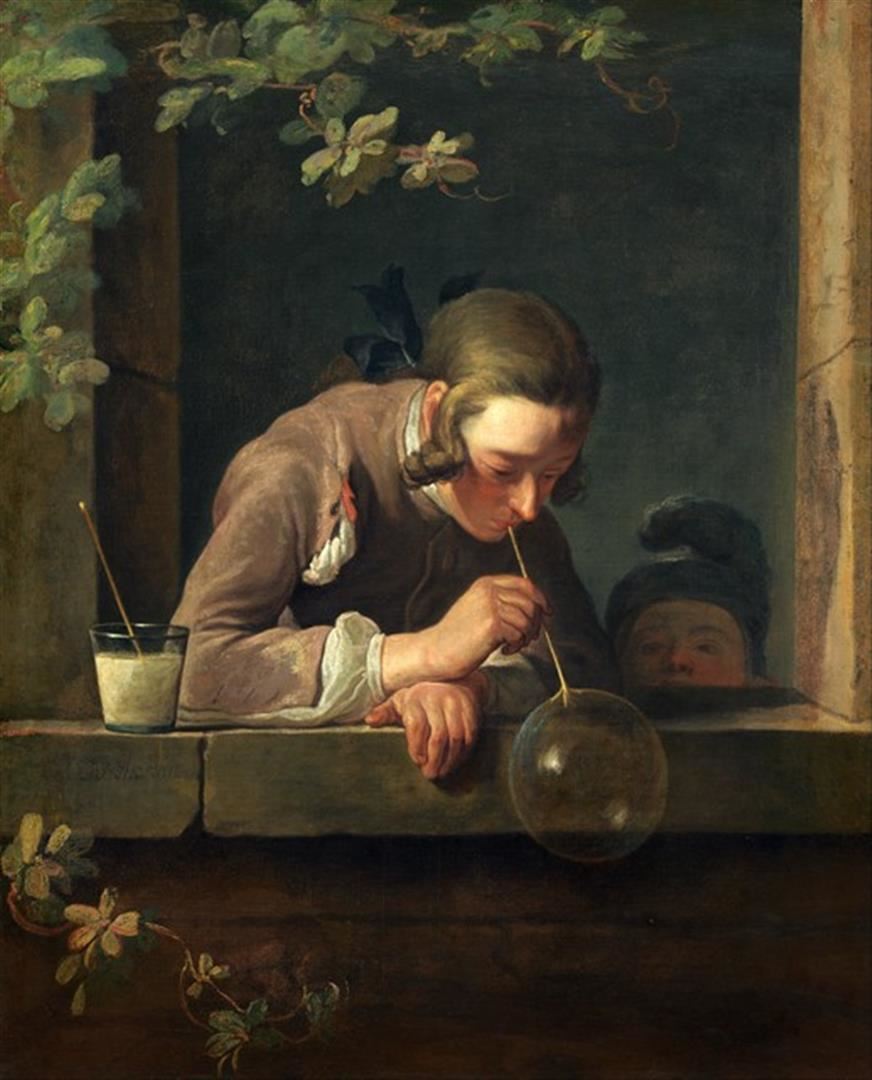 Artist: Jean Baptiste Chardin - Title: Soap Bubbles - Medium: Fine Art Reproduction Giclee on Canvas - Image Size: Approximately 32 inches x 25.75 inches - Unframed on Unstretched Canvas - Biography: Jean-Baptiste-Simeon Chardin (November 2, 1699 - December 6, 1779) was an 18th-century French painter. He is considered a master of still life, and is also noted for his genre paintings which depict kitchen maids, children, and domestic activities. Carefully balanced composition, soft diffusion of light, and granular impasto characterize his work.