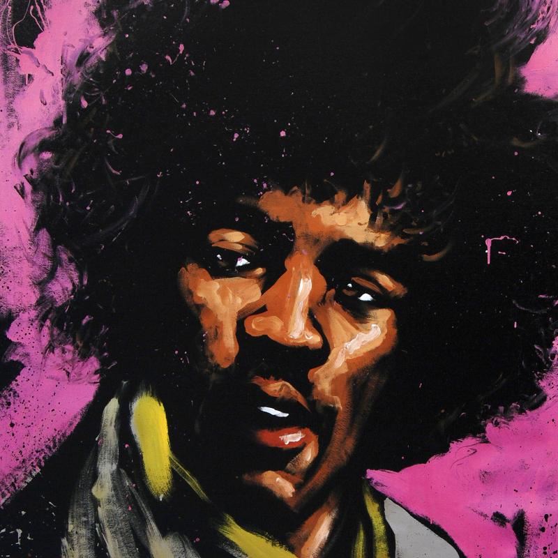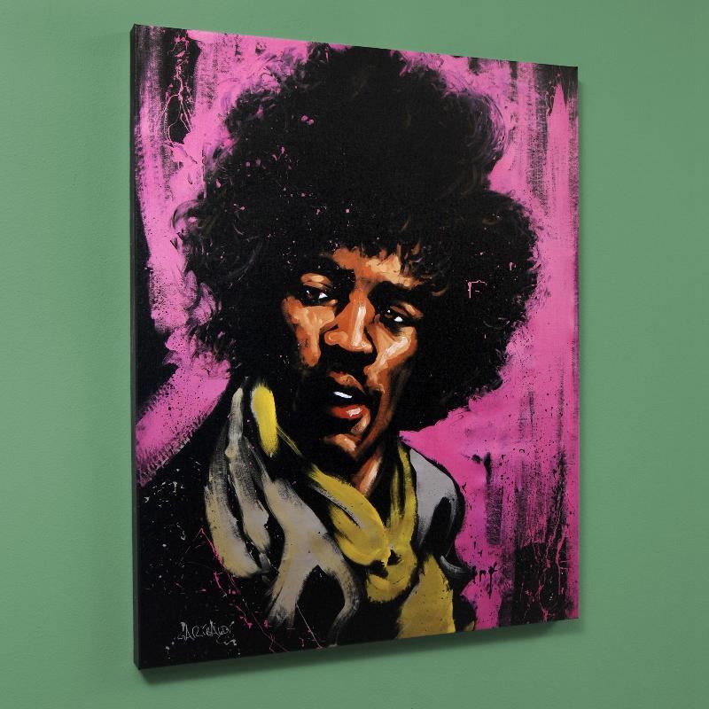 Combining his passions for music and art, David Garibaldi creates stunning visual poetry. "Jimi Hendrix (Purple Haze)" is a limited edition giclee on stretched canvas, numbered and bearing the artist's authorized signature. This piece comes gallery wrapped. Includes Certificate of Authenticity! Measures approx. 40" x 50" (image).
