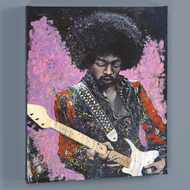 With bright colors and expressive lines, Stephen Fishwick puts a unique spin on pop culture portraits. "Jimi" is a limited edition giclee on stretched canvas, numbered and bears the artist's authorized signature. This piece comes gallery wrapped! Includes Letter of Authenticity. Measures approx. 16" x 20" (image). This item requires special handling and may have a longer than usual turnaround.