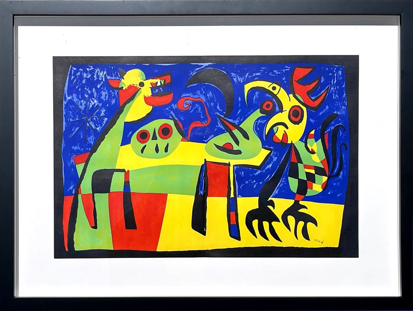 This is an original stone lithograph, circa 1953, by Joan Miro. It is a 14 x 20 inch plate signed lithograph and comes framed at 21 x 28". IFPDA Certificate of Authenticity upon Sale.