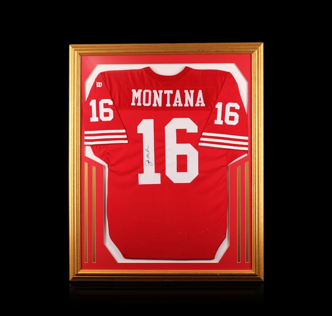 Joe Montana Framed Autographed Jersey. Comes with Certificate of Authenticity.