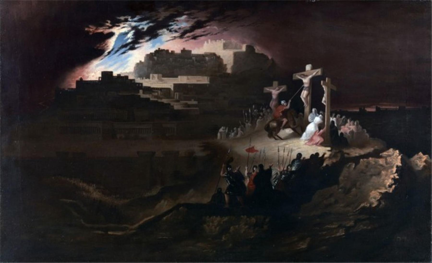 Artist: John Martin - Title: Calvary - Medium: Fine Art Reproduction Giclee on Canvas - Image Size: Approximately 19.5 inches x 32 inches - Unframed on Unstretched Canvas - Biography: John Martin (19 July 1789 - 17 February 1854) was an English Romantic painter, engraver and illustrator. He was celebrated for his typically vast and melodramatic paintings of religious subjects and fantastic compositions, populated with minute figures placed in imposing landscapes. Martin's paintings, and the engravings made from them, enjoyed great success with the general public--in 1821 Lawrence referred to him as "the most popular painter of his day"--but were lambasted by Ruskin and other critics.