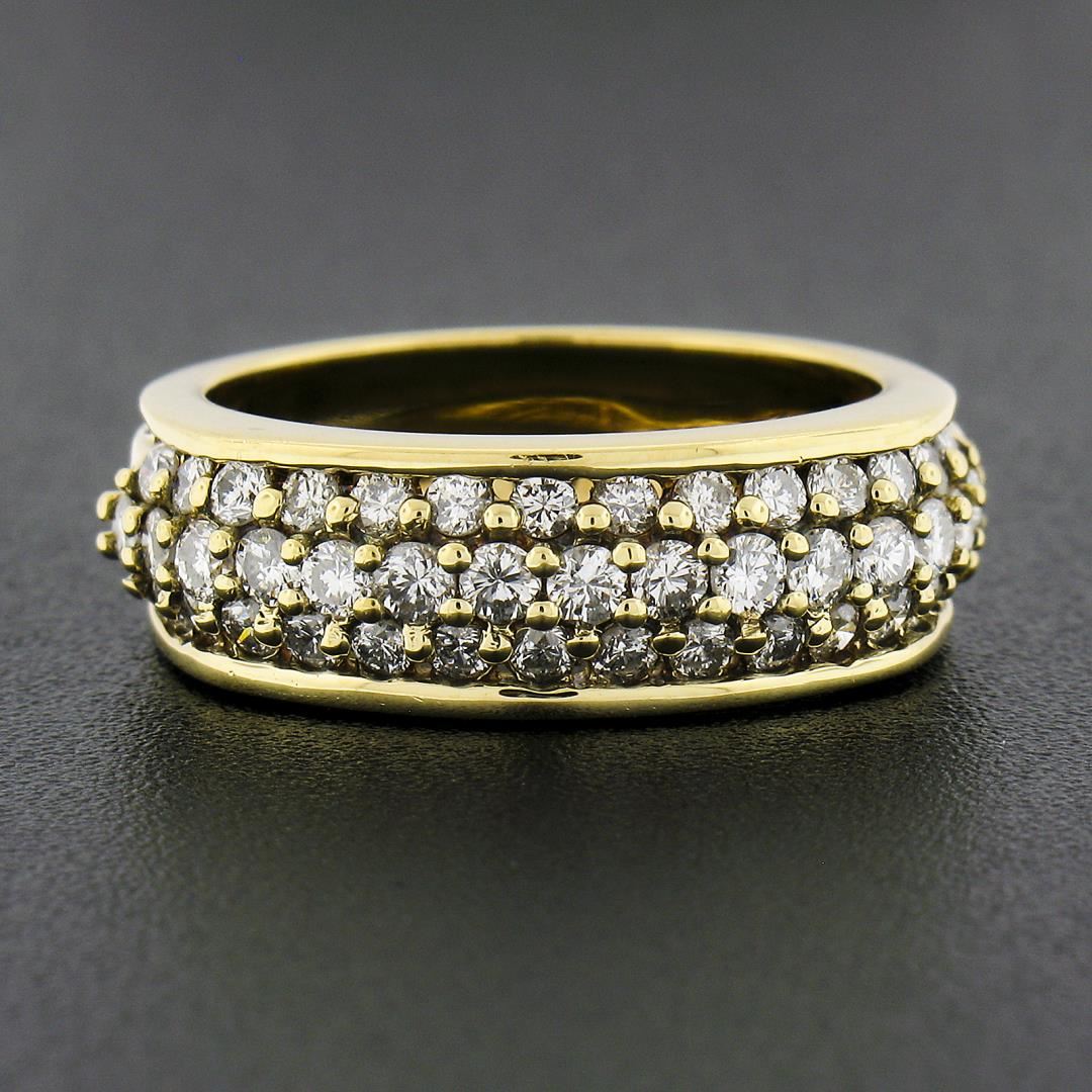 A solid 18k yellow gold band ring by Jose Hess, with 43 round cut natural diamonds (G/H - SI1/SI2 ; 0.90ctw). The ring is size 6.0, weighs a total of 5.94 grams, and measures 6.8mm wide.