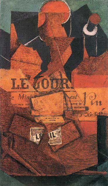 Juan Gris - Tobacco, Newspaper And Wine Bottle