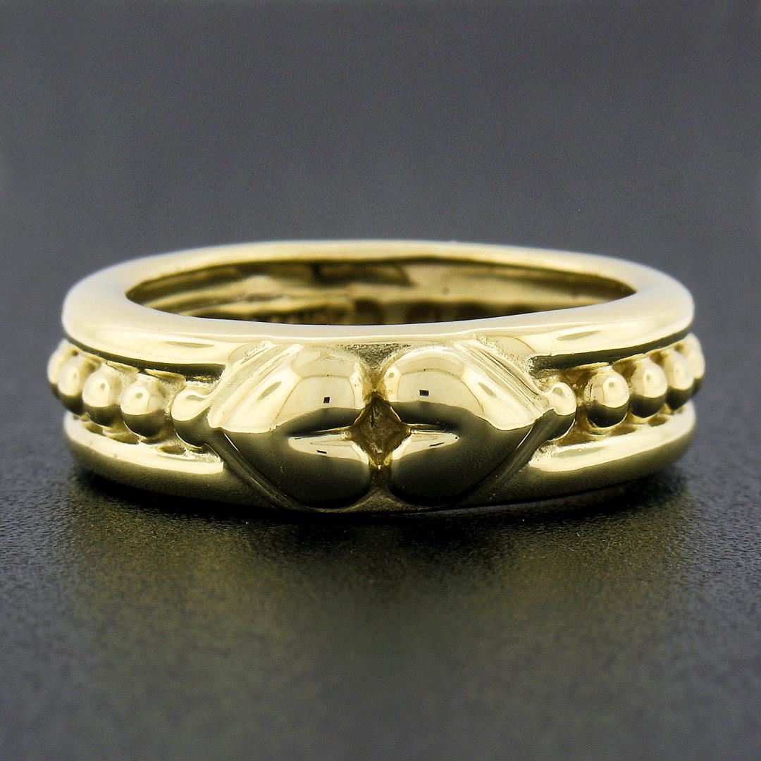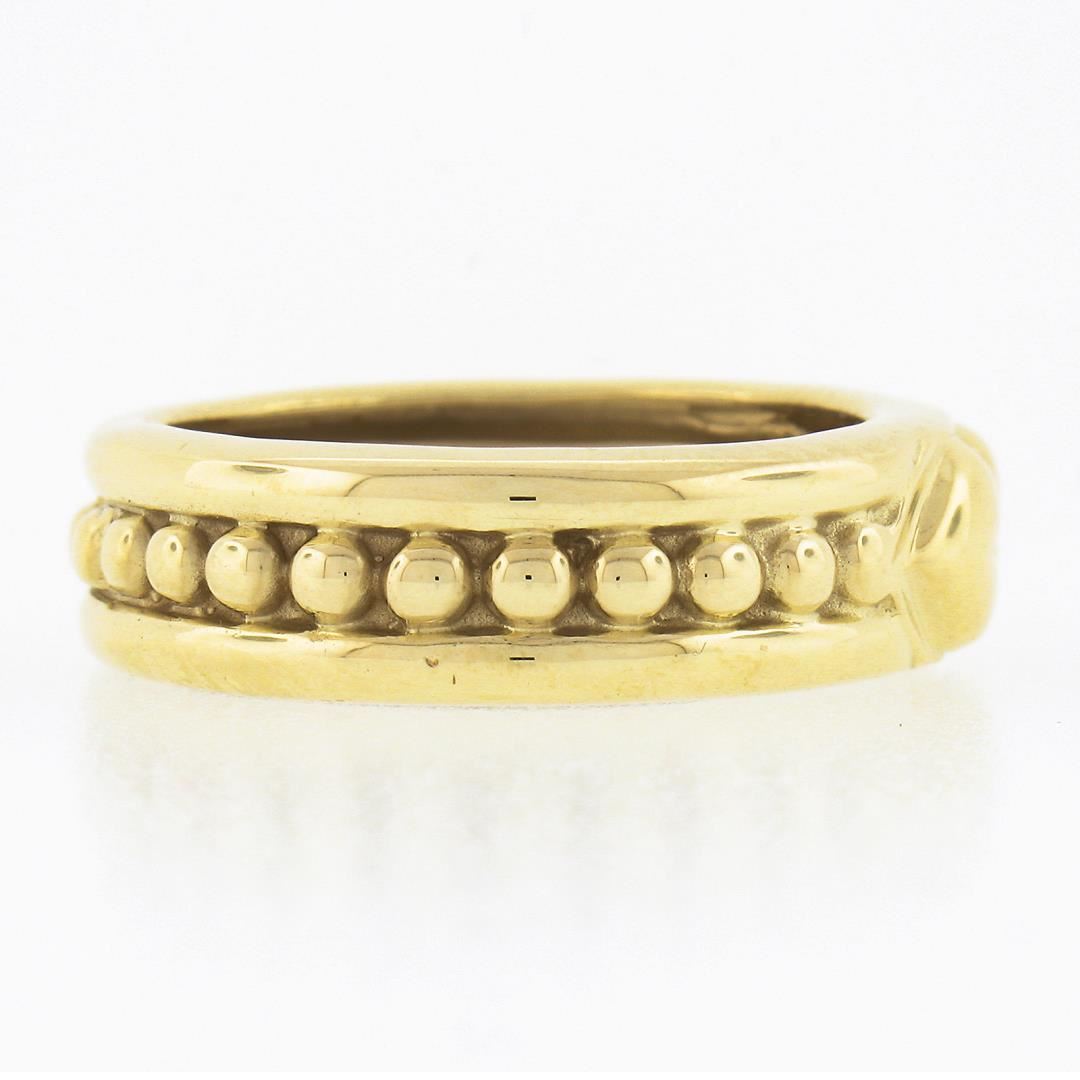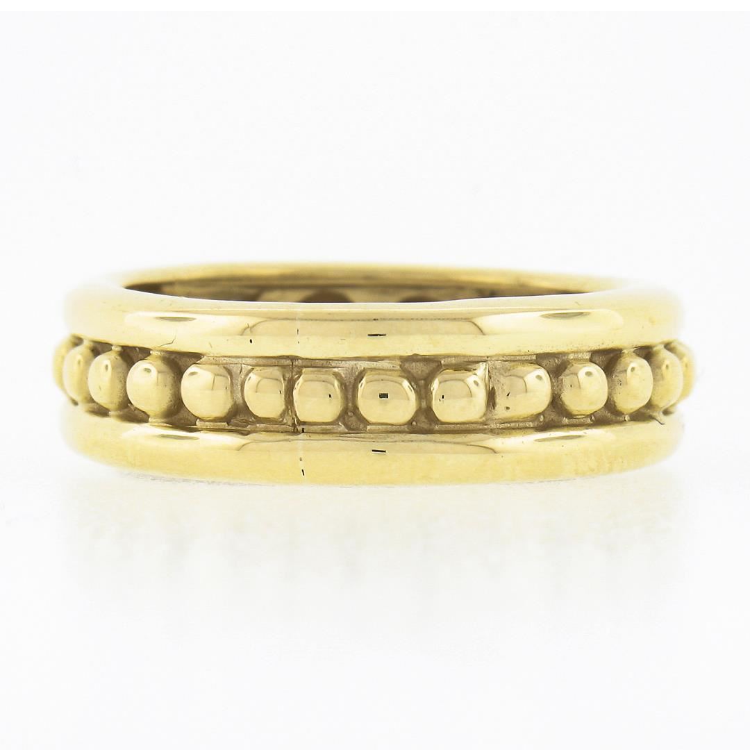 A solid 18k yellow gold ring by Judith Ripka. The ring is size 8.0, weighs a total of 7.28 grams, and measures 6.5mm wide.