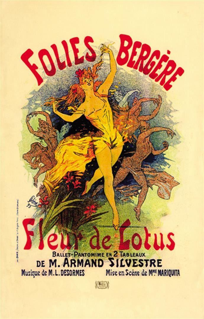 Artist: Jules Cheret Title: Fleur De Lotus Medium: Fine Art Reproduction Giclee on Canvas Image Size: Approximately 20 inches x 12.75 inches Unframed on Unstretched Canvas Jules Cheret, (born May 31, 1836, Paris, France--died September 23, 1933, Nice), French poster illustrator and graphic designer who has been called "the father of the modern poster."