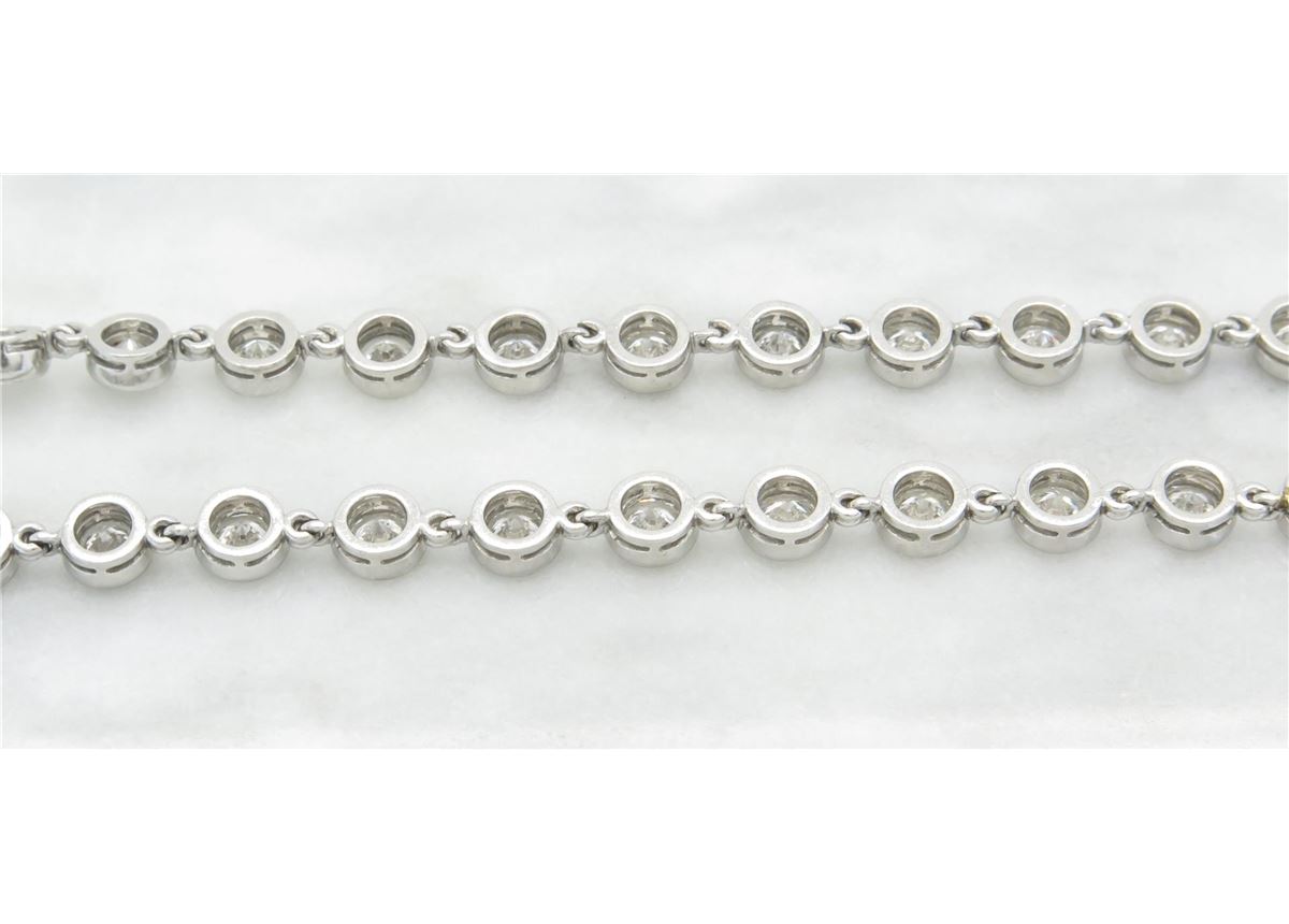 One tested platinum designer Julius Cohen diamond necklace. Containing: 44 Round Brilliant Cut Diamonds. Clarity: VS-SI, Color: F-H. Approximate total diamond weight: 11.00CTW. All diamonds are graded in the mounting unless otherwise stated. Weight of necklace: 30.4 grams, Size: 13.5" Long. The necklace has an 18K gold clasp.