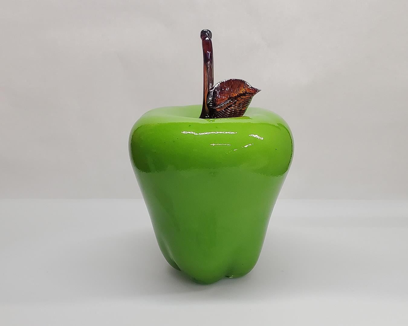 Green apple with golden stem, this piece measures 17" tall and 11" diameter.
