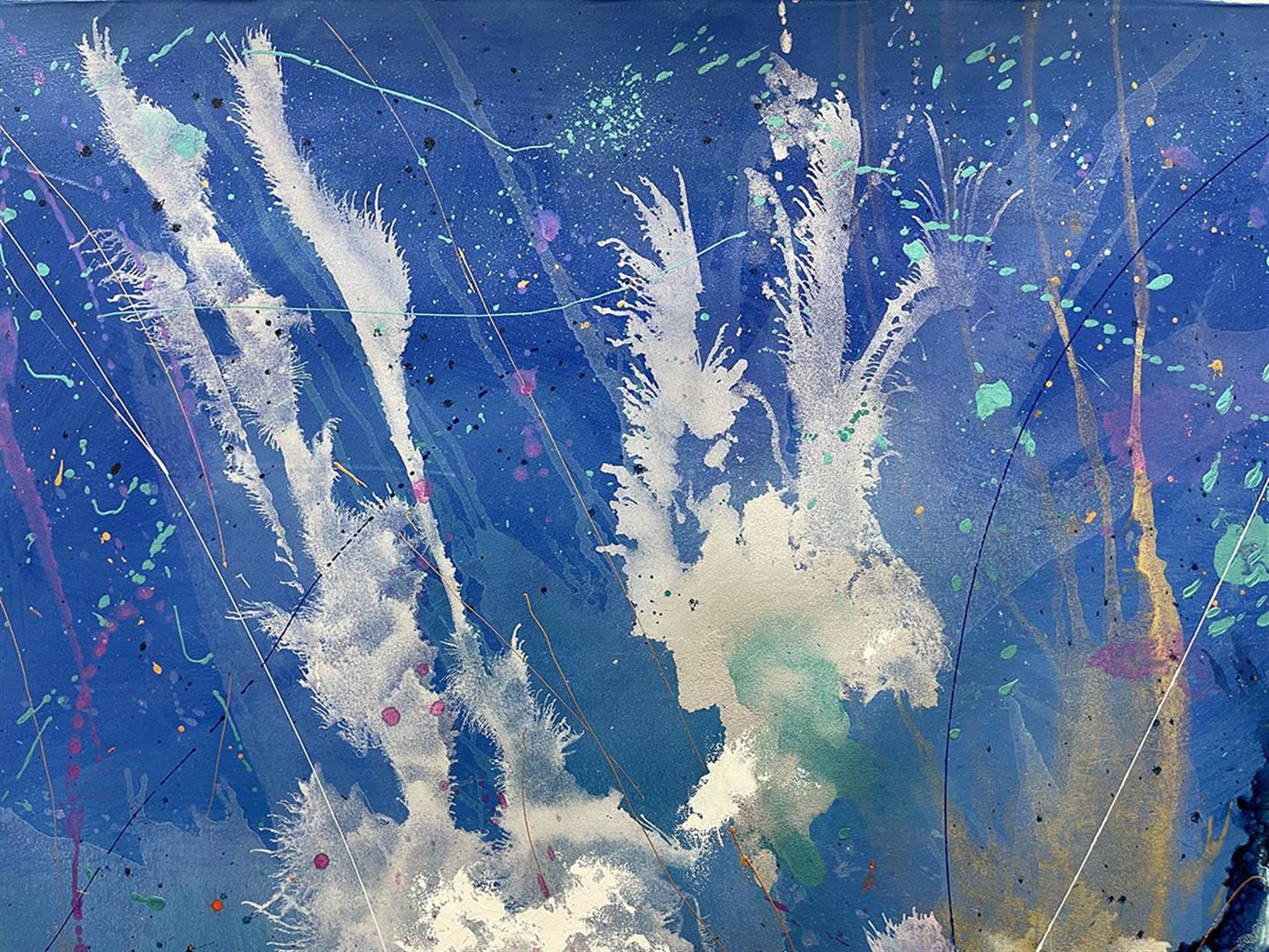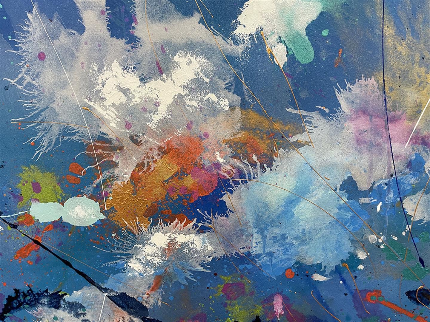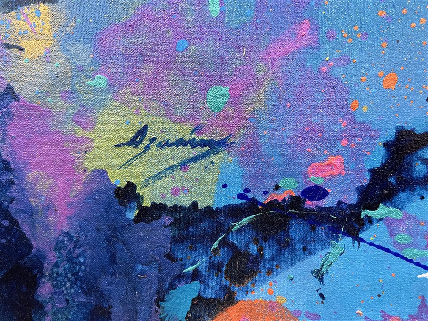 Eye-Catching original acrylic on canvas. Hand signed by artist. This artwork comes rolled ready to stretch. Approximately 60x60 inches