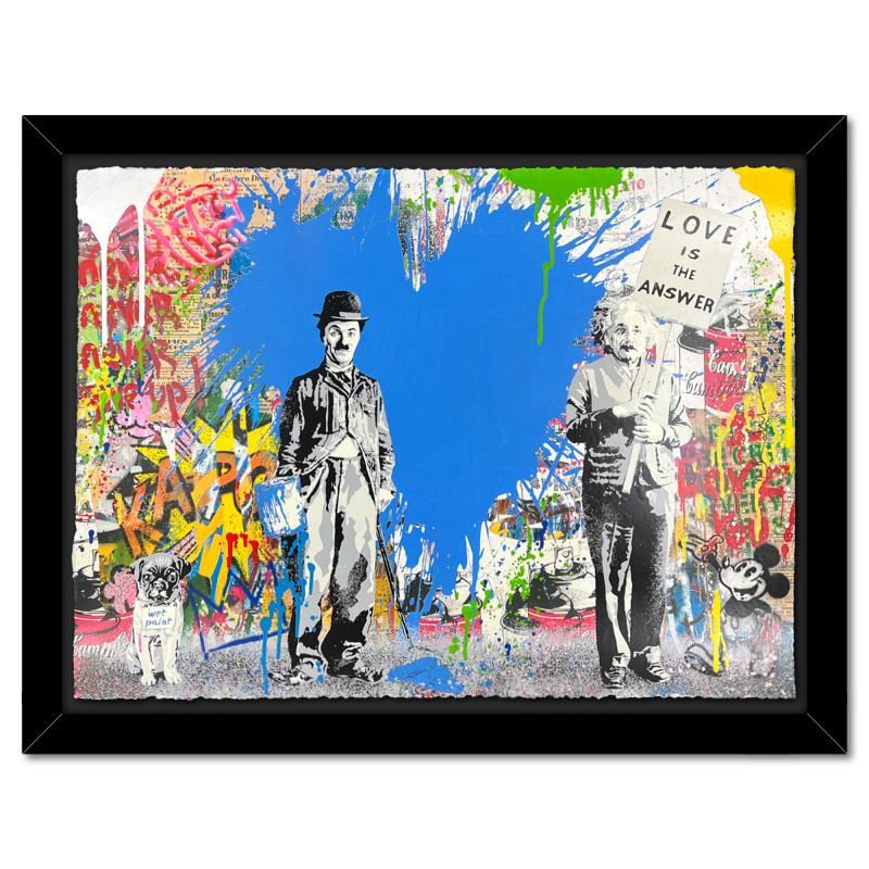 Juxtapose By Mr Brainwash Original. "Juxtapose" is a mixed media original on deckle edge paper by Mr. Brainwash, hand signed inverso and bearing the thumbprint of the artist. This piece comes custom framed. Includes Certificate of Authenticity. Measures approx. 34" x 26" (frame), 30" x 22" (image).