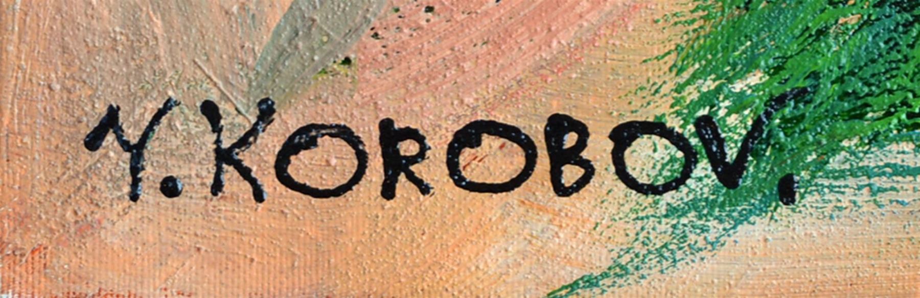Artist: Yana Korobov (b. 1972) - Title: Love You More - Medium: Original Acrylic on Canvas - Signature: This one-of-a-kind work is hand-signed by the artist at the bottom of the image - Image Size: Approximately 20 inches x 20 inches - Framed: Stretched and Ready for Framing - Details: This work comes with a Certificate of Authenticity - Biography: Yana Korobov was born in the Ukraine in 1972. She studied at her local High School of the Arts in Kharkiv. She then went on to study at the Art & Industry College and the Sloboda State University in Kharkiv. She graduated as an art teacher from the State Art College in Kharkiv. In 2003 she immigrated to Israel. She is a young and upcoming artist whose work has been admired worldwide. Her artwork has recently been exhibited in Israel, the United Stated and Europe. -