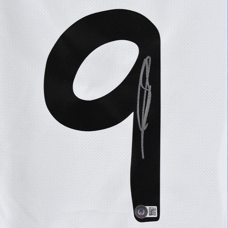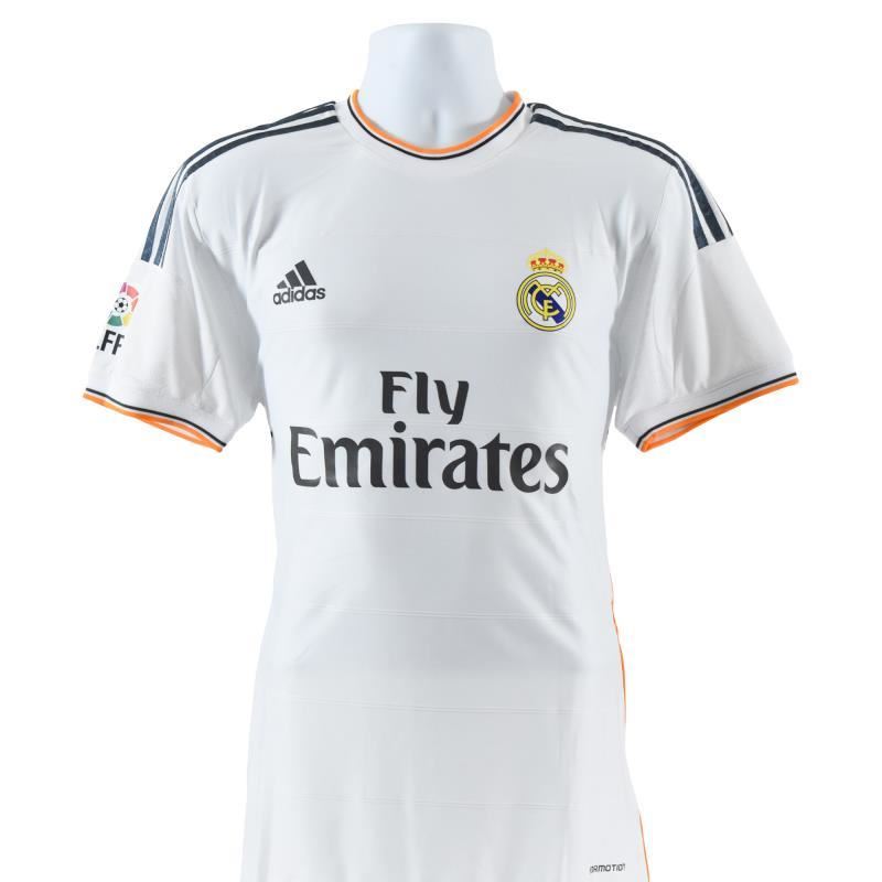 This is a replica Real Madrid 16/17 soccer jersey (Home) autographed by Karim Benzema. This piece is presented with a Certificate of Authenticity from Beckett with a QR code and certification number. Measures approx. 30" x 28" (jersey).