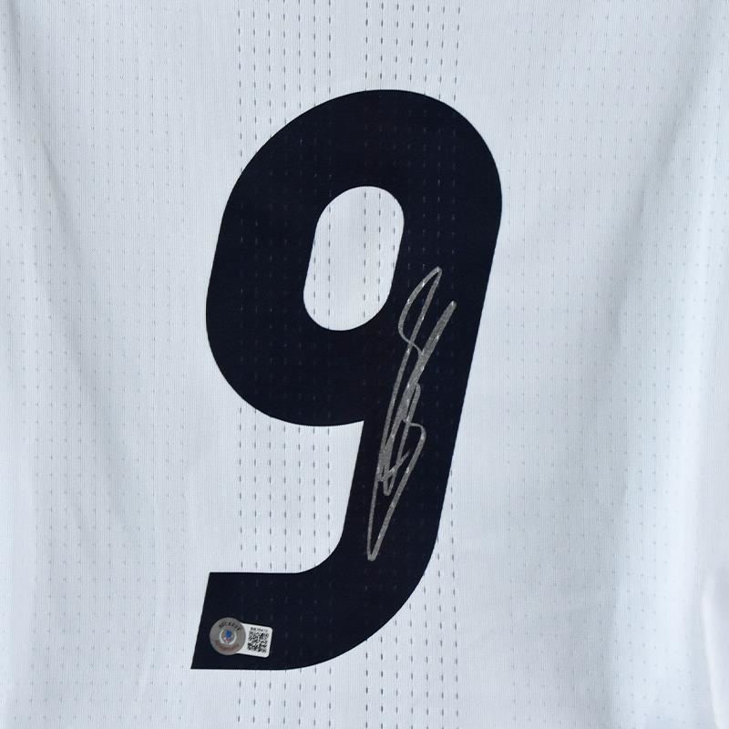 Karim Benzema Real Madrid 16/17 Jersey by Benzema, Karim. This is a replica Real Madrid 16/17 soccer Jersey autographed by Karim Benzema. This piece is presented with a Certificate of Authenticity from Beckett with a QR code and certification number. Measures approx. 30" x 28" (jersey).