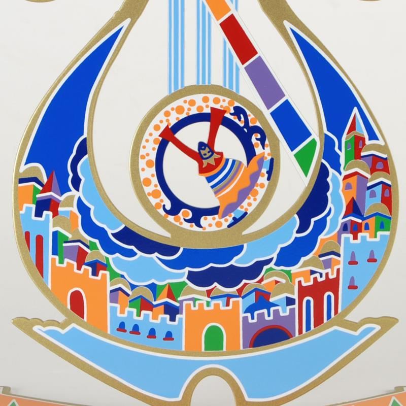 "King David's Harp" is a limited edition metal sculpture by Raphael Abecassis, numbered and hand signed by the artist. This piece features a different design on each side and is numbered in Hebrew on the sculpture's base. Includes Certificate of Authenticity. Measures approx. 11.5" (width) x 13.5" (height); 4.5" (depth of base).