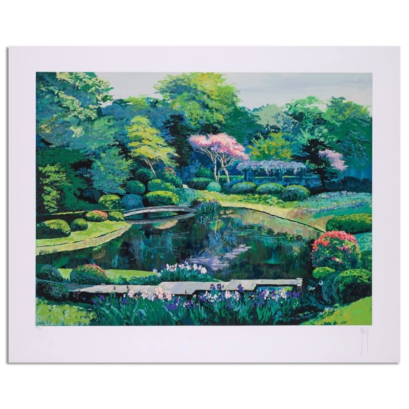 "Koi Pond" is a limited edition serigraph on paper by Mark King (1931-2014). Hand signed and numbered, this piece comes with a letter of authenticity and measures approximately 27" x 36" (image).