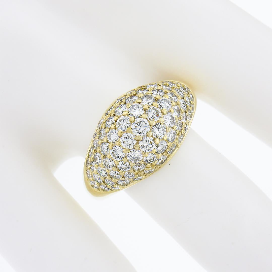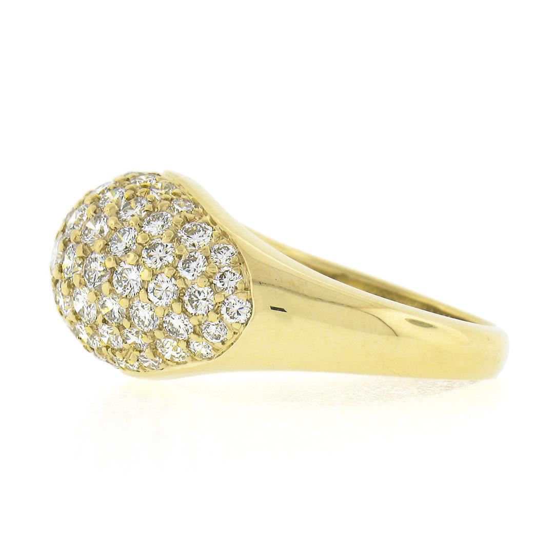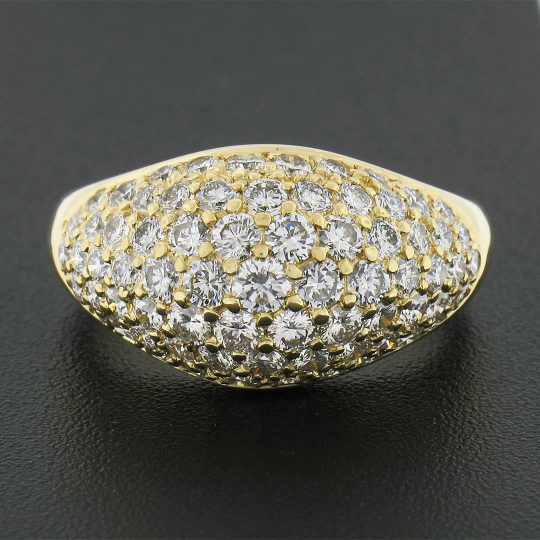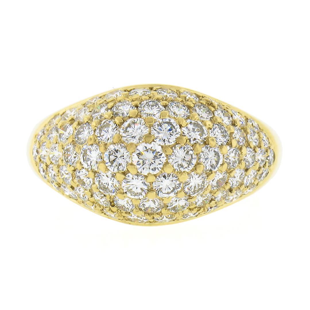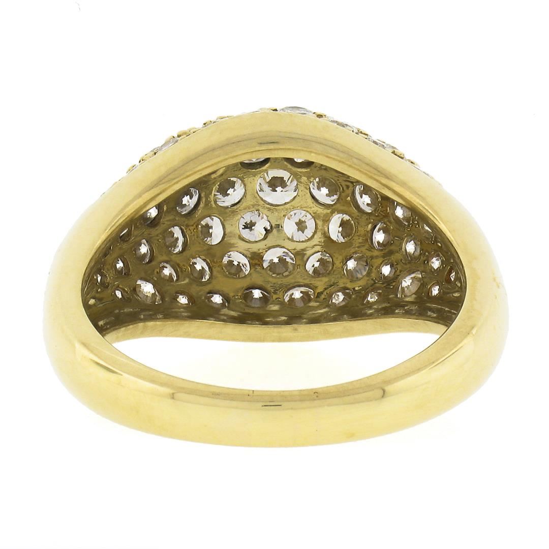 A solid 18k yellow gold domed ring by Kurt Wayne, with 71 round cut natural diamonds (E/F - VS1/VS2 ; 2.25ctw). The ring is size 7.25, weighs a total of 7.28 grams, and measures 11.8mm wide.