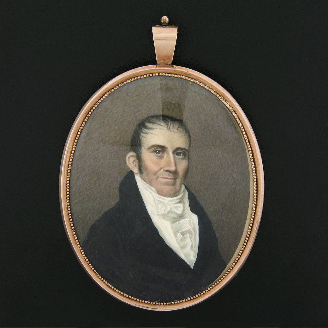 An antique solid 12+k yellow gold mourning pendant, with paint & hair. The pendant weighs a total of 46.50 grams, measures 91.70mx62.90mm including the bail, and the inside of the bail measures ##x##mm.