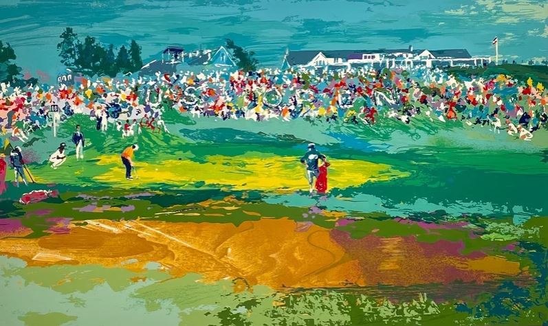 Artist: Leroy Neiman Title: Home Hole At Shinnecock, 1995 Medium: Serigraph on Paper Signature: Hand-signed by the Artist Limited Edition: 450 Image Size: Approximately 24 inches x 34 inches Framed: Unframed Details: This work comes with a Certificate of Authenticity Biography: Leroy Neiman's style explodes with the dramatic intensity of Abstract Expressionist brush strokes, strokes that pick out action that is strikingly accurate. This unique combination is so appealing that Neiman has brought art into the lives of more people than most post-war American artists put together.