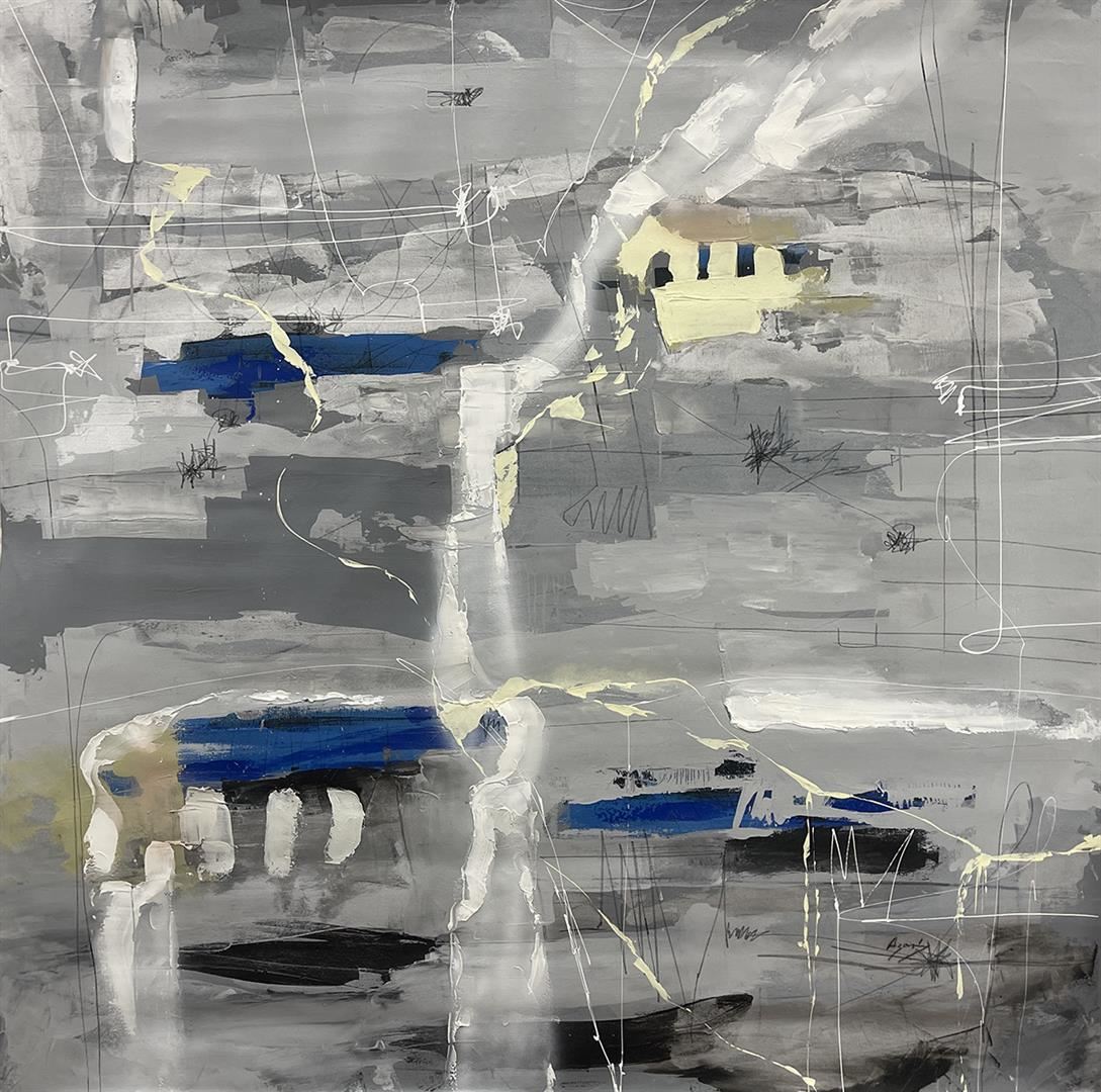 Marvelous original acrylic on canvas. Hand signed by artist. This artwork comes rolled. Approximately 60x60 inches
