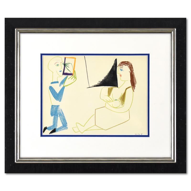 "La Comedie Humaine 29.1.54.V" is a lithograph on paper by Pablo Picasso (1881-1973). This piece comes framed. Includes Letter of Authenticity. Measures approx. 21" x 18" (frame), 12.5" x 9.5" (image).