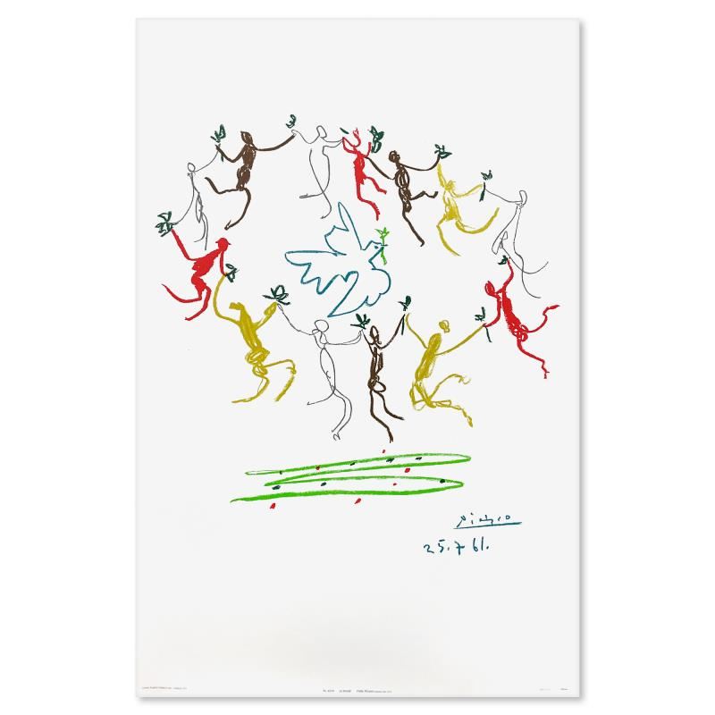 "La Ronde" is is a collograph on paper by Pablo Picasso (1881-1973), bearing the plate signed signature of the artist. Measures approx. 26.5" x 40" (image). Please note: there may be minor imperfections on the paper but the piece is in overall good condition.
