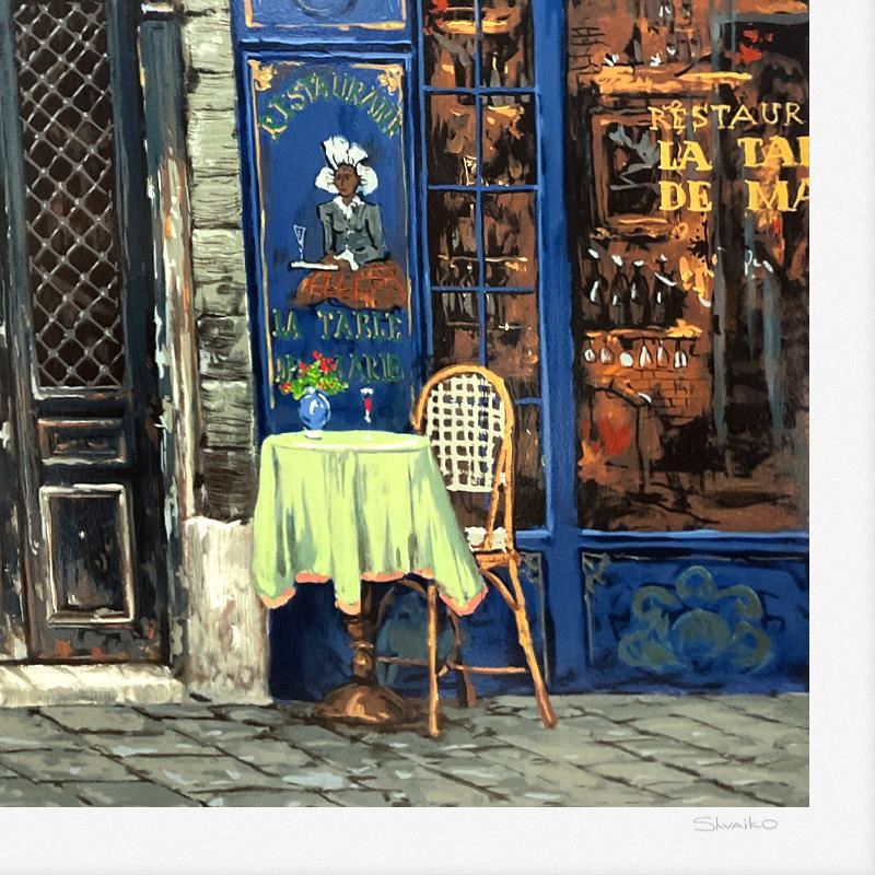"La Vielle Bicyclette" is a limited edition printer's proof serigraph on paper by Viktor Shvaiko, numbered 2/3 and hand signed by the artist. Includes Letter of Authenticity. Measures approx. 32.5" x 58.5" (border), 28" x 54.5" (image).