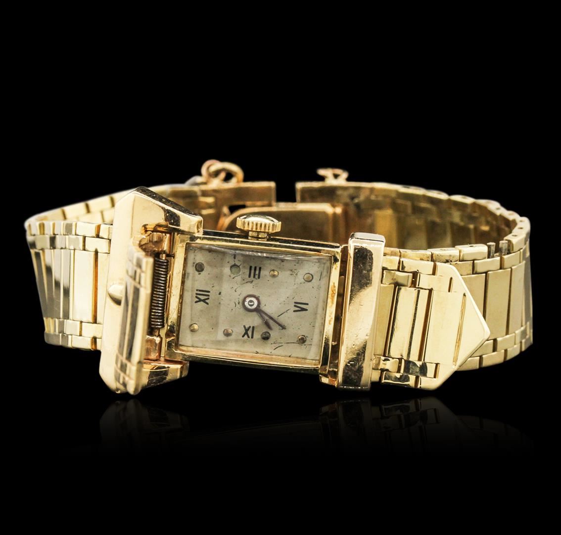 One Ladies Hidden Dial Vintage Wristwatch featuring: 14KT yellow gold weighing 48.00 grams.