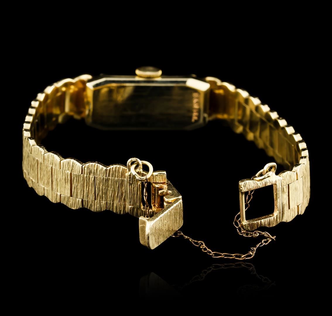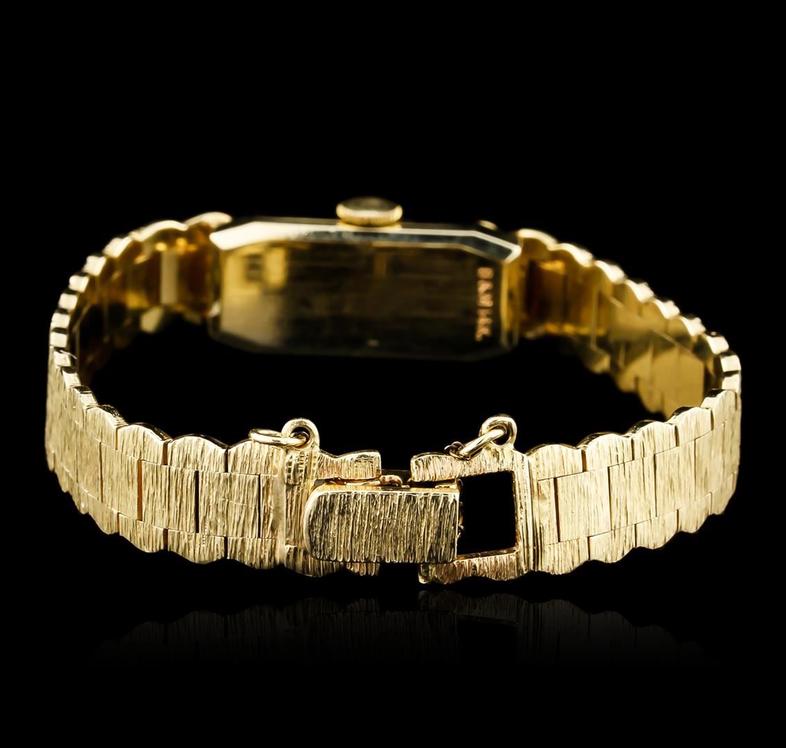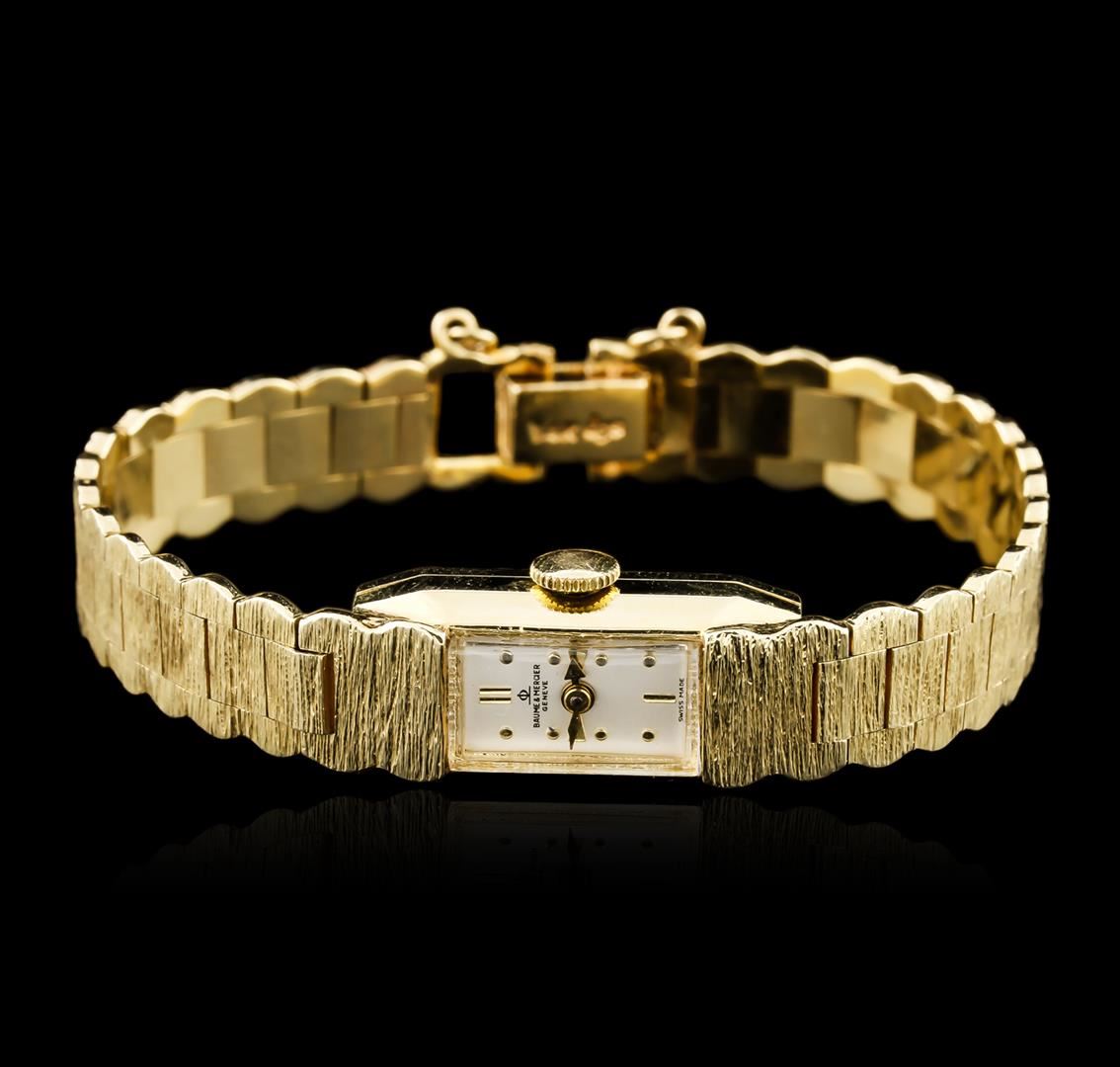 One Ladies Baume and Mercier Wristwatch featuring: Case, Crown, and Bracelet: 14KT yellow gold. Dial: white color. Total weight of wristwatch is 21.70 grams.
